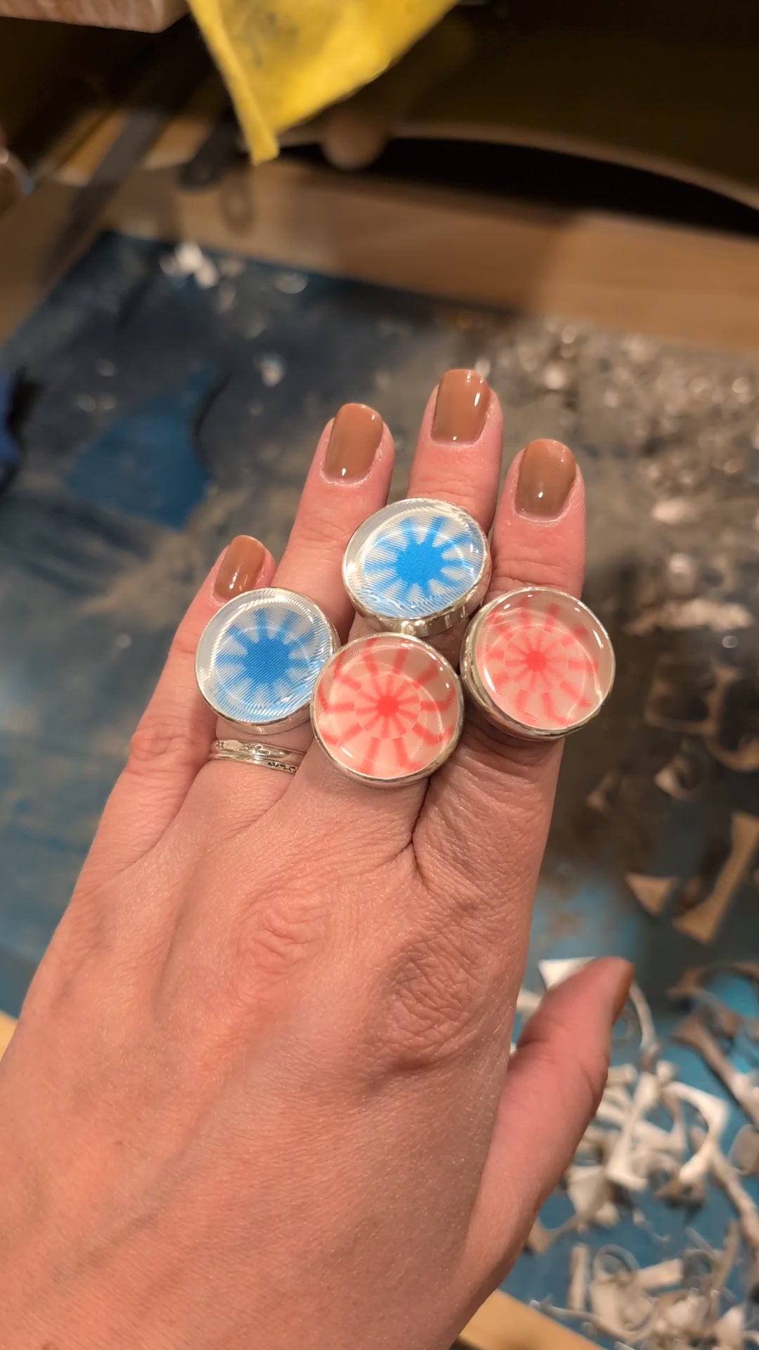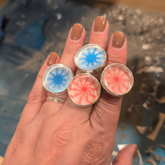 These rings use lenticular images, set under glass, to create a mesmerizing effect!